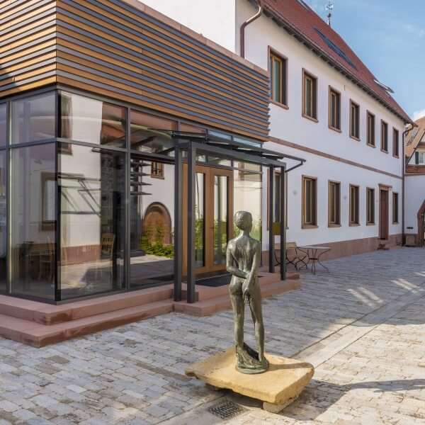 Prof. Dr. Cornelia Ewigleben, Museumsdirektorin a.D., Karlsruhe, führt in die Ausstellung ein und stellt die Künstler und Künstlerinnen vor. Die Künstler Rinaldo Greco und Cesare Marcotto präsentieren farbenprächtige Gemälde und ausdrucksstarke Skulpturen. Inspiration finden beide in der Schönheit der Natur. Die Designer Claudia Adam und Jörg Stoffel begeistern mit Schmuckstücken aus Weinflaschen.