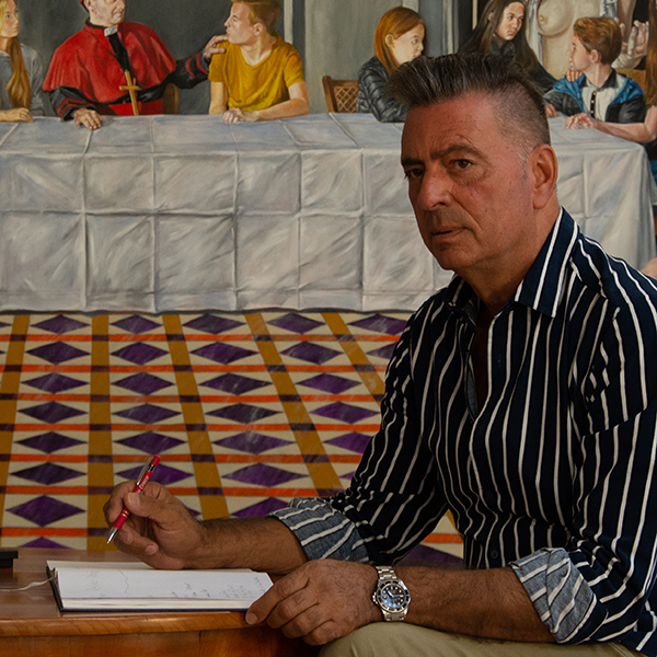 Ein Abend mit dem Veroneser Maler Cesare Marcoto und dem Duo Blue Eyes. Nach Einführung zu den Werken des Künstlers in der Ausstellung, genießen Sie einen italienischen Aperitivo, kleine Köstlichkeiten zu Sekt. Caesare Marcoto liest aus seinem Buch und lässt Sie teilhaben an der Entstehung seiner Bilder. Speziell für diese Werke komponierte Sound-Collagen mit Stimme und Instrument des Duos Blue Eyes ergänzen den Kunstgenuss.
