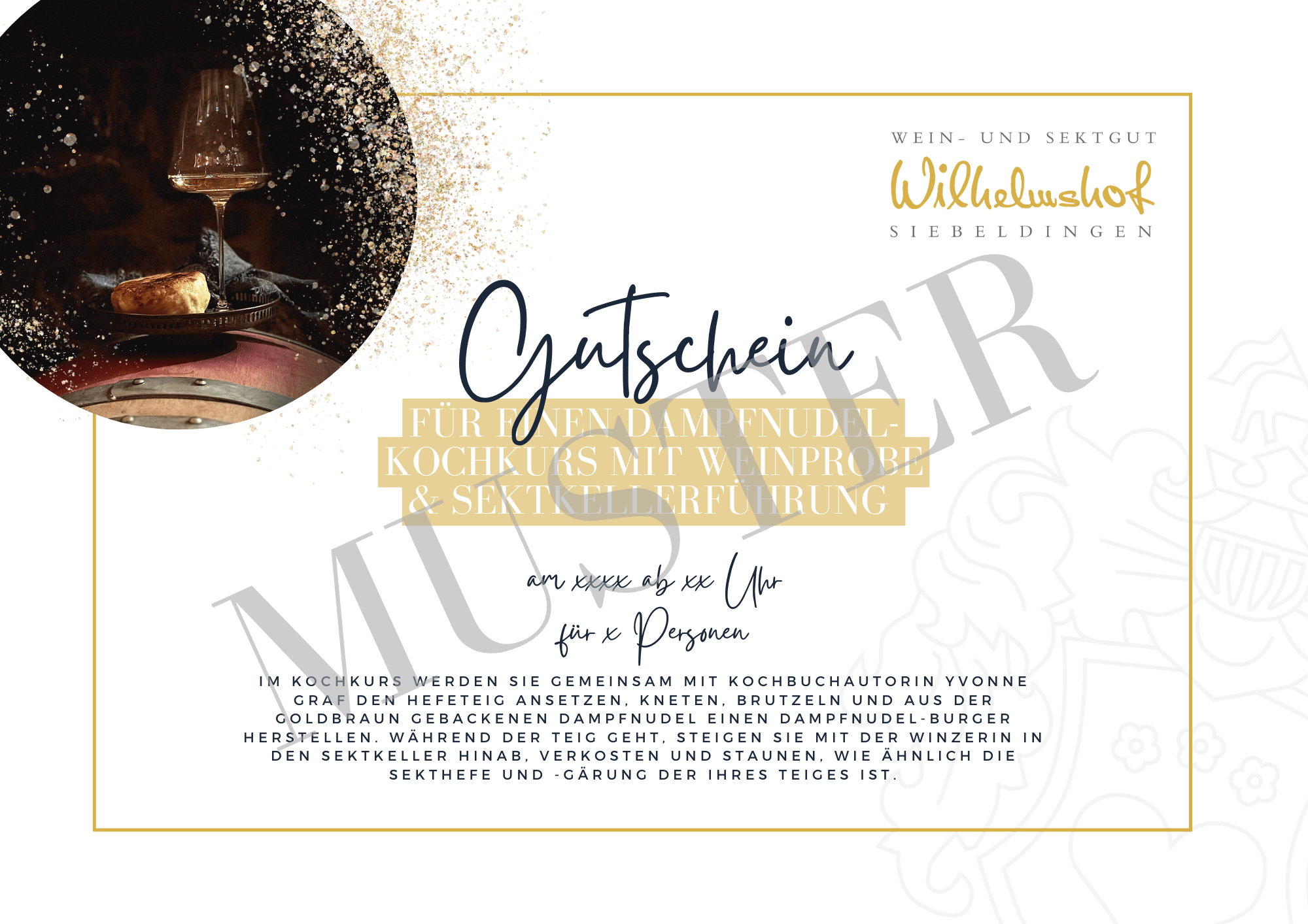 Im Kochkurs werden Sie gemeinsam mit Kochbuchautorin Yvonne Graf den Hefeteig ansetzen, kneten, brutzeln und aus der goldbraun gebackenen Dampfnudel einen Dampfnudel-Burger herstellen. Während der Teig geht, steigen Sie mit der Winzerin in den Sektkeller hinab, verkosten und staunen, wie ähnlich die Sekthefe und -gärung der Ihres Teiges ist.