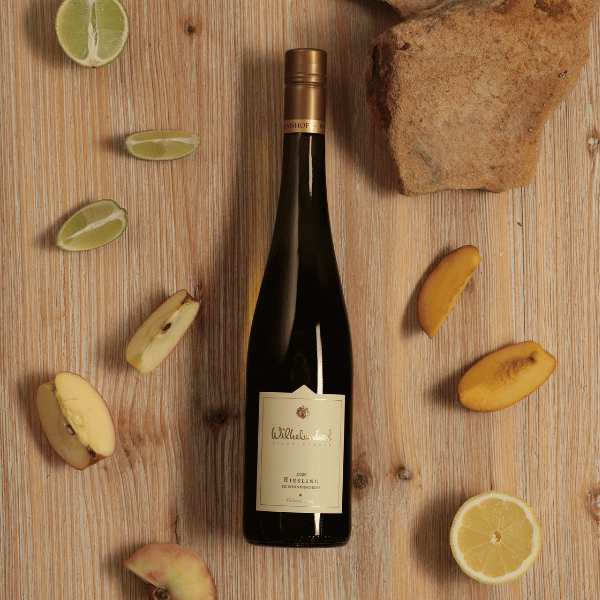 Der “König der deutschen Weißweinsorten” ist auf 30% unserer Weinbergfläche bestockt, hauptsächlich in der höher liegenden und von sandig-lehmigen Bundsandsteinverwitterung geprägten Böden.