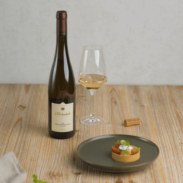 Hellgelbe Farbe, Elegante feine Duftnoten von Lindenblüten, Klee und Raps und Paranuss. Extrem vollmundig, weich und rund im Geschmack. Die dezenten Holzaromen sind sehr vornehm eingebunden. Kraftvoller, voluminöser Weißburgunder mit viel Druck am Gaumen und langem Lagerpotenzial.